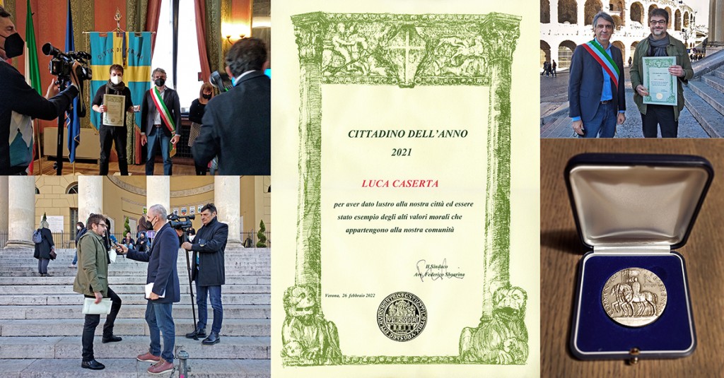 Congratulazioni al regista Luca Caserta per il Premio “Cittadino dell’Anno” consegnatogli dal Sindaco e dal Comune di Verona con la seguente motivazione: “Per aver dato lustro alla nostra città ed essere stato esempio degli alti valori morali che appartengono alla nostra comunità”.